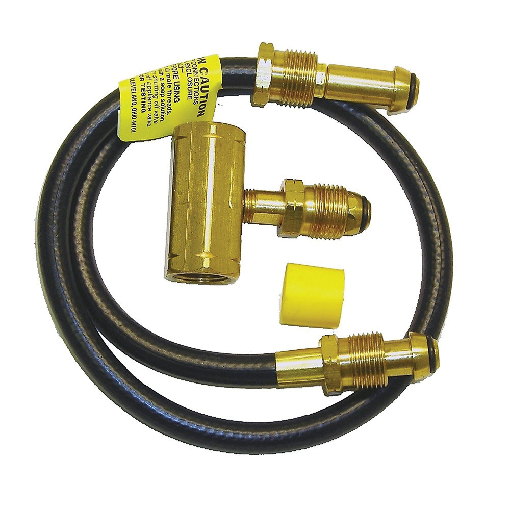 This 2-Tank Hook-Up Kit lets you connect two tanks to your appliance. It lets you run appliances longer without needing to change tanks. Includes 30in. hose with excess flow soft nose P.O.L.s on both ends and full flow tee.